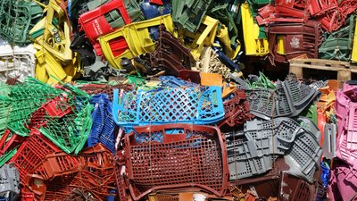 Recovered from the dual system or bulky waste, end-of-life materials made from PP plastics are usually thinner-walled than products made from HDPE plastics. They are also often very brittle and often contain organic residues such as those found in yoghurt cups. PP materials also have a lower bulk density than HDPE products due to the wall thickness and the film content.